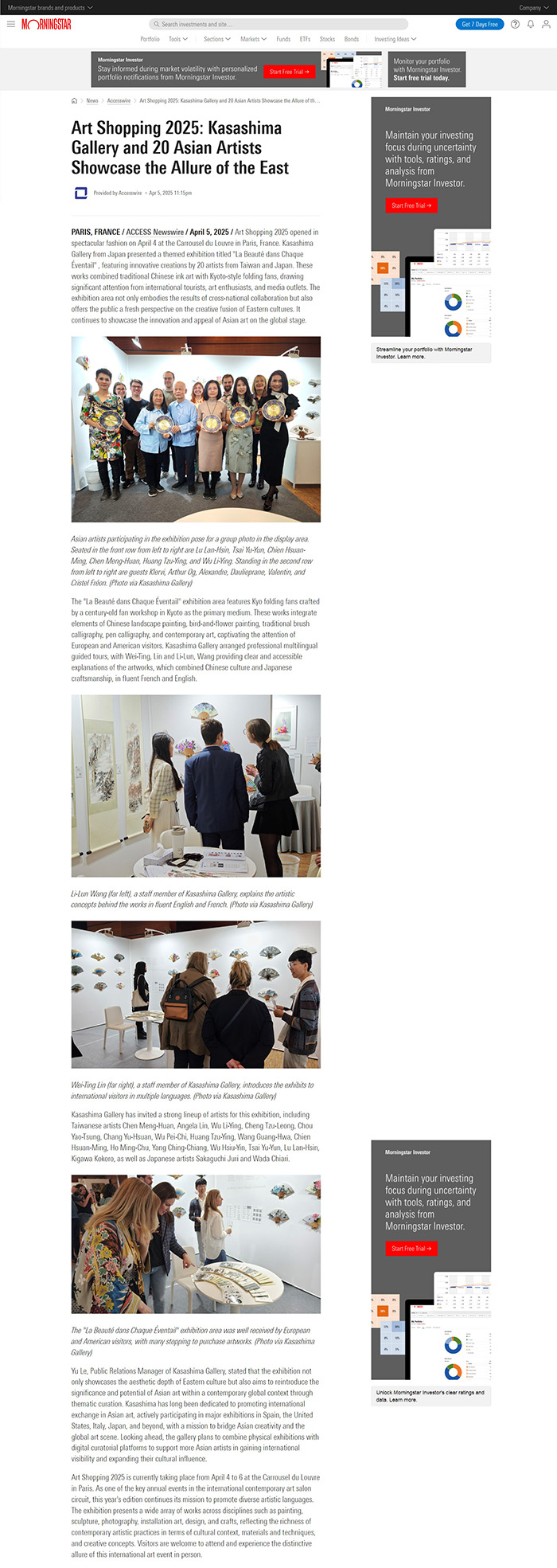 2025 年 4 月於法國巴黎羅浮宮卡魯塞爾廳 (Carrousel du Louvre) 舉辦的當代國際藝術沙龍展,大洋 (MERXWIRE) 採訪的海外藝術家,獲得台灣、中國、美國網路及報紙媒體報導,刊登量超過 120 個網站。