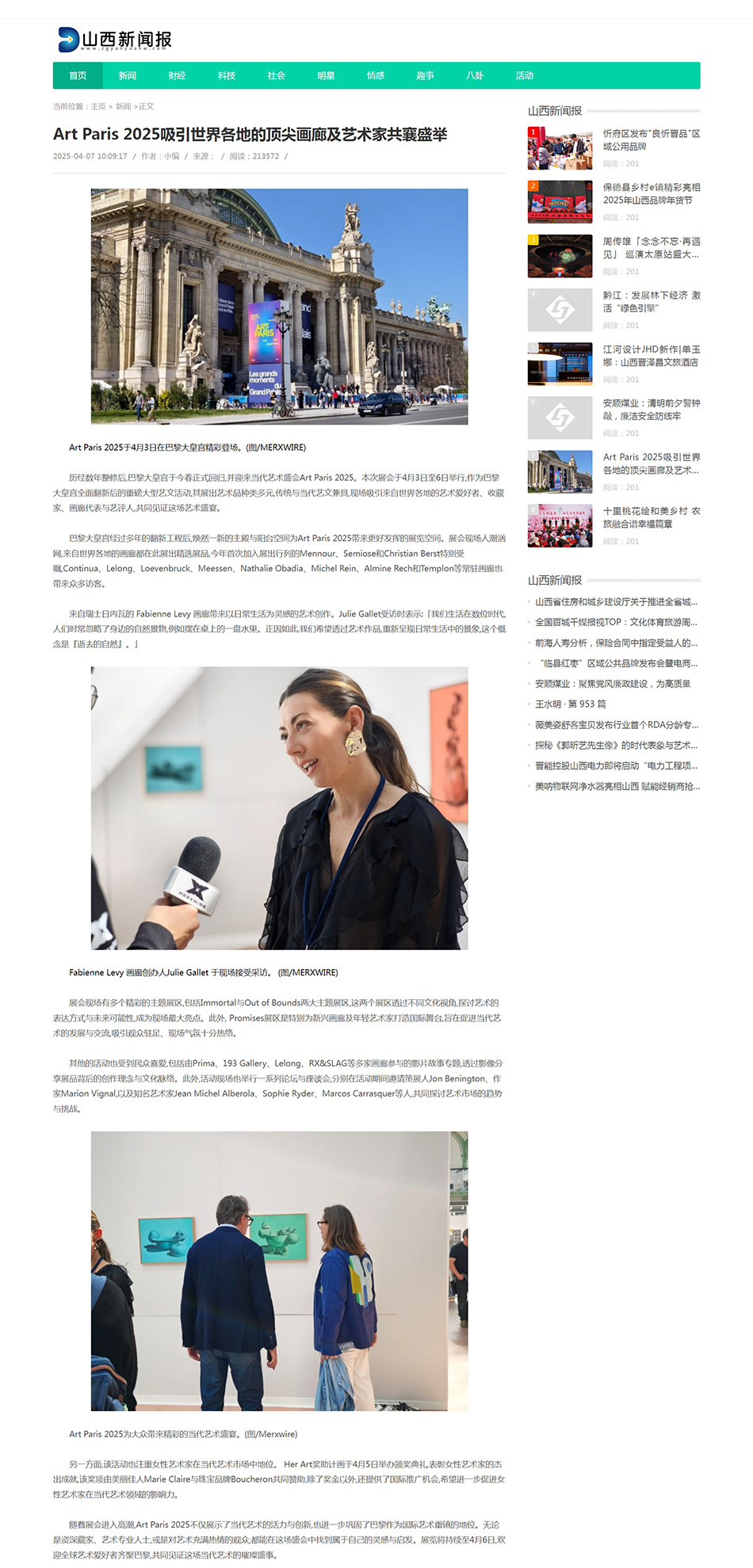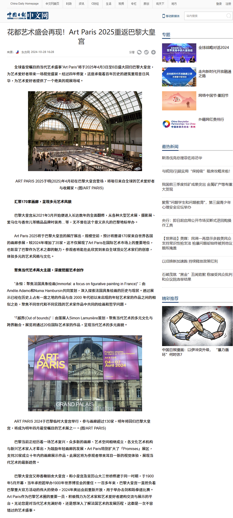本屆 ART PARIS 特別聚焦於多個主題,引導觀者更深入地探索當代藝術的多元面貌。藝術編輯敏銳地捕捉藝術與時尚之間微妙的共鳴,從構圖創作、色彩運用、材質選擇乃至於整體氛圍,都與當季的時尚潮流不謀而合。藝術不僅是視覺的享受,更是啟發時尚創意的豐沛沃土。在展覽現場,大洋採訪團隊與多位重量級藝術家、畫廊策展人進行了深入的對話,聆聽他們分享創作理念、市場趨勢以及對未來藝術發展的展望。這些珍貴的訪談內容,獲得大量華人中文媒體報導採用,為讀者提供全面、深入的藝術視角。