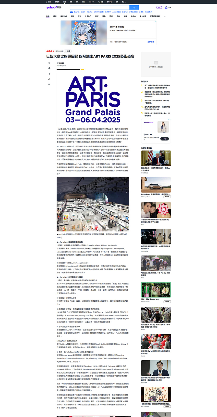【媒體夥伴案例】巴黎藝術博覽會 (ART PARIS 2025) 中文媒體發布